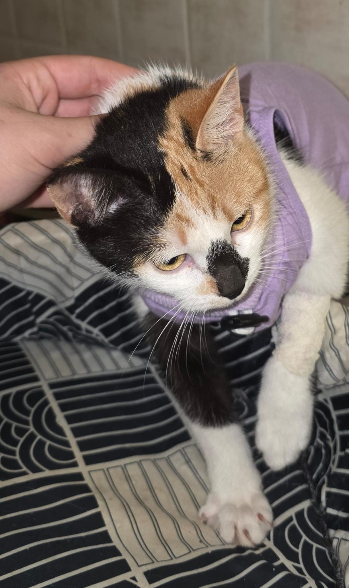 Vogliamo condividere con voi una bellissima notizia: la nostra piccola Claudia è stata ufficialmente sterilizzata! Essendo ancora giovanissima, Claudia stava già affrontando il suo primo calore. Per una gattina così piccola, una gravidanza sarebbe stata un rischio enorme, con il pericolo concreto di perdere sia lei che i suoi futuri cuccioli. Abbiamo scelto di agire subito per garantirle una vita lunga, sana e felice. Tutto questo è stato possibile solo grazie al vostro immenso cuore. Con le vostre donazioni ci avete permesso di coprire le spese dell'intervento e di metterla al sicuro. Ora Claudietta sta bene, è un po' intontita ma circondata da amore!